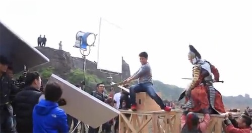 (Ngày Nay) - Miêu Ất Ất ngồi xe đẩy thể hiện cảnh đánh đấm, diễn viên phim "Nữ y Minh Phi truyện" đóng cảnh ngựa phi trên một chiếc xe không di chuyển.