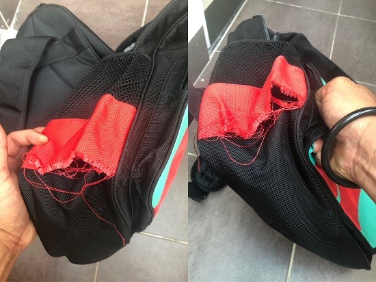 Hình ảnh chiếc ba lô đồng phục do nhà trường bán ra, mới sử dụng chưa hết một học kì đã bung chỉ |