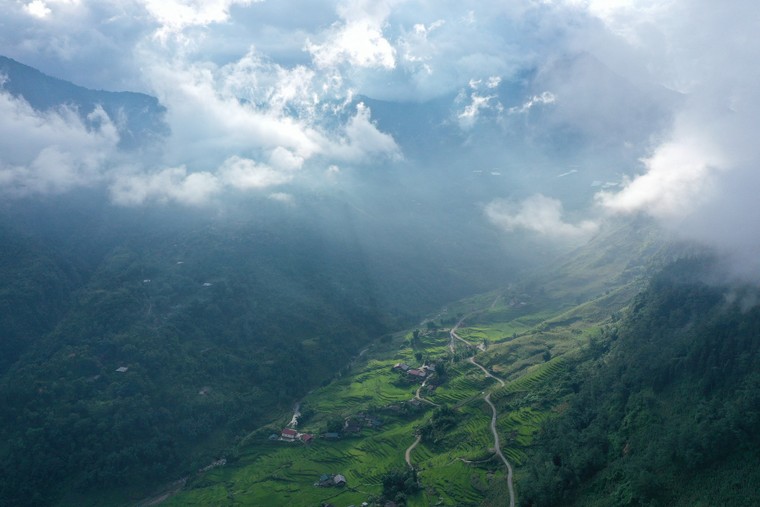Bên cạnh dạo bộ, du khách lựa chọn “góc nhìn của những chú chim”, để ngắm khung cảnh mùa lúa ngoạn mục của Sa Pa trên tuyến cáp treo tới đỉnh thiêng Fansipan. Nắng hè rọi soi qua những áng mây, tạo thành những vệt sáng tối điểm tô cho khung cảnh hùng vỹ của núi rừng Hoàng Liên Sơn và cả những thung lũng xanh màu lúa mới.
